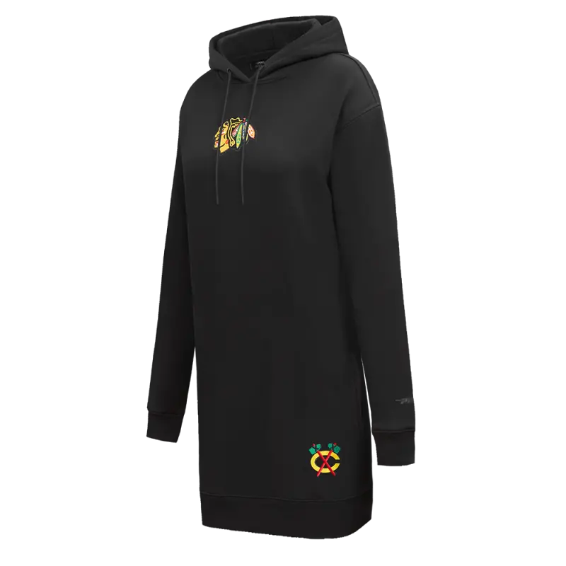 NHL CHICAGO BLACKHAWKS CLASSIC WOMEN’S FLC HOODIE DRESS (BLACK)
