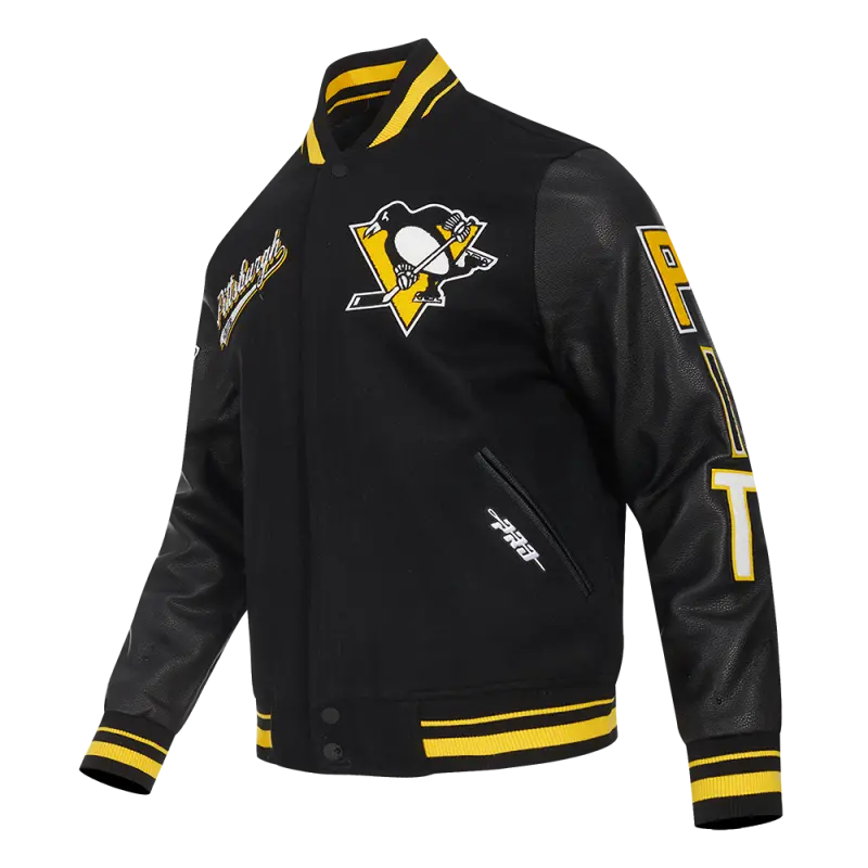 NHL PITTSBURGH PENGUINS CLASSIC CHENILLE MEN’S TRACK JACKET (BLACK\/YELLOW)