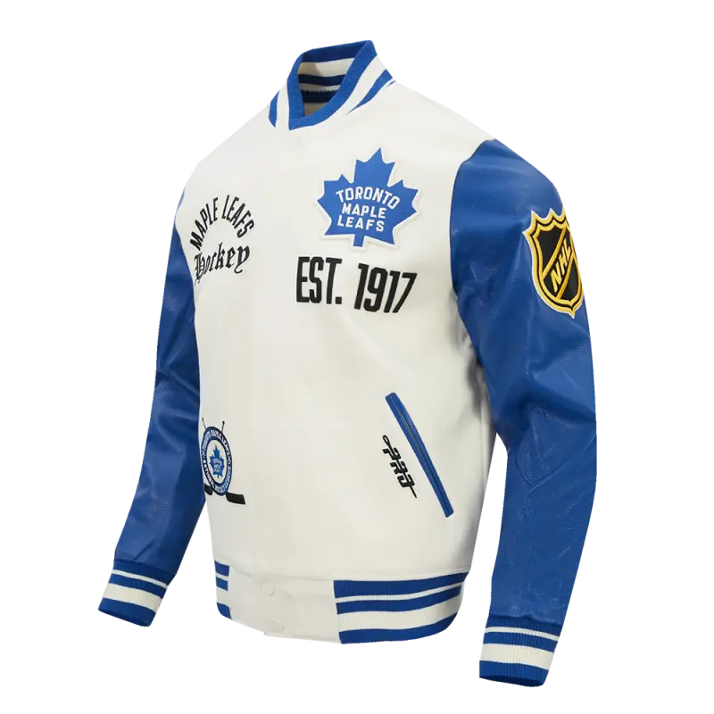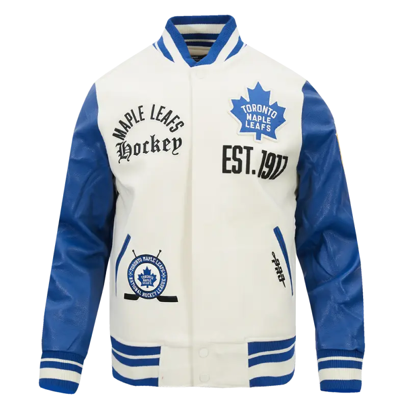 NHL TORONTO MAPLE LEAFS MODERN ORIGINALS MEN’S RIB WOOL VARSITY JACKET (EGGSHELL\/DODGER BLUE)