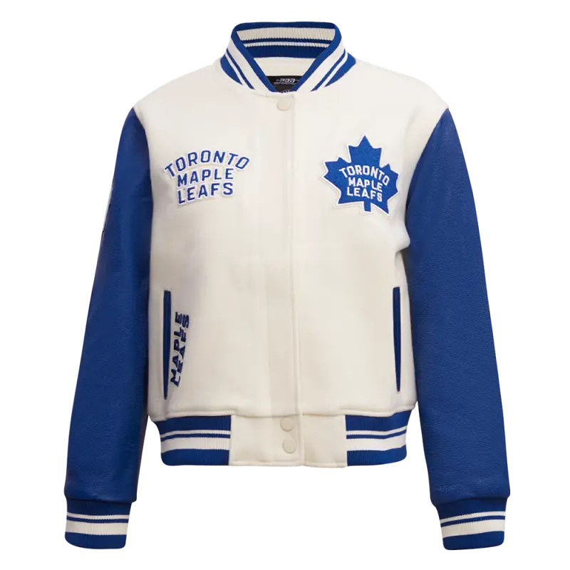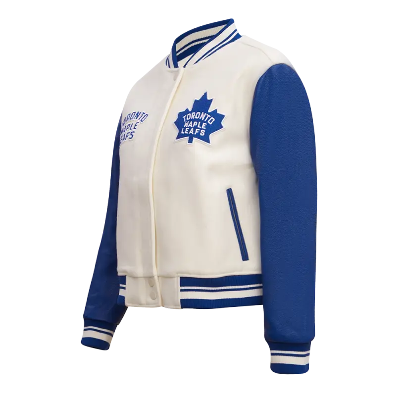 NHL TORONTO MAPLE LEAFS RETRO CLASSIC WOMEN’S RIB WOOL VARSITY JACKET (EGGSHELL\/DODGER BLUE)