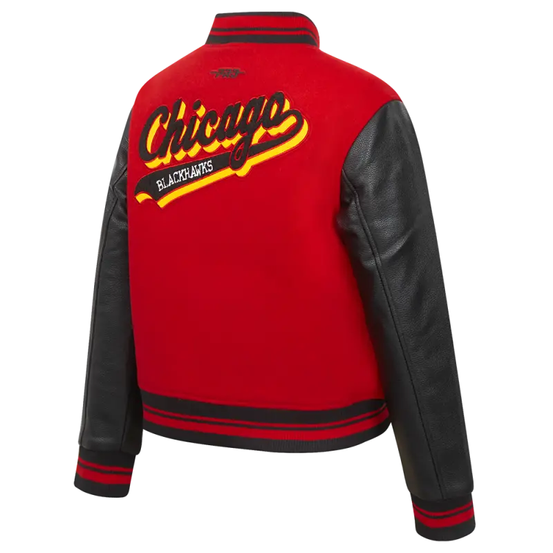 Home / Shop / Chicago Blackhawks / NHL CHICAGO BLACKHAWKS SCRIPT TAIL WOMEN’S WOOL VARSITY JACKET (RED\/BLACK)