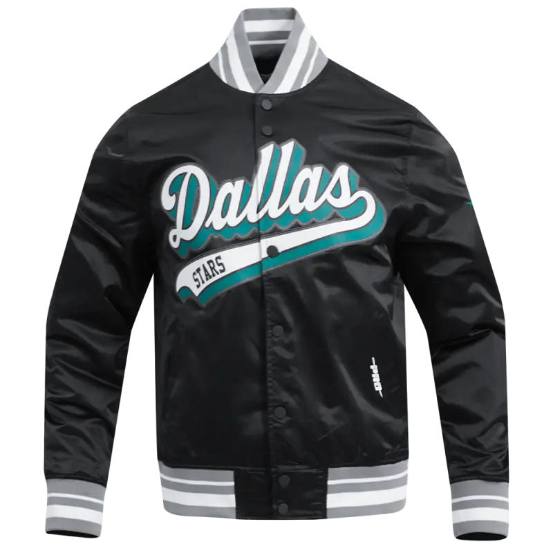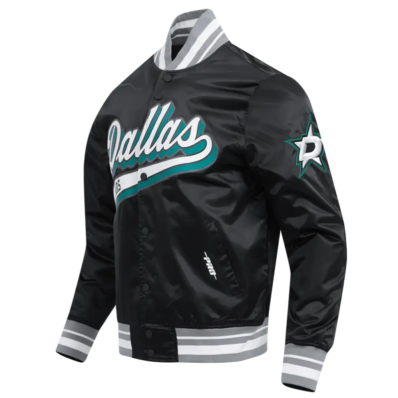 Home / Shop / Dallas Stars / NHL DALLAS STARS SCRIPT TAIL MEN’S SATIN JACKET (BLACK\/GRAY)