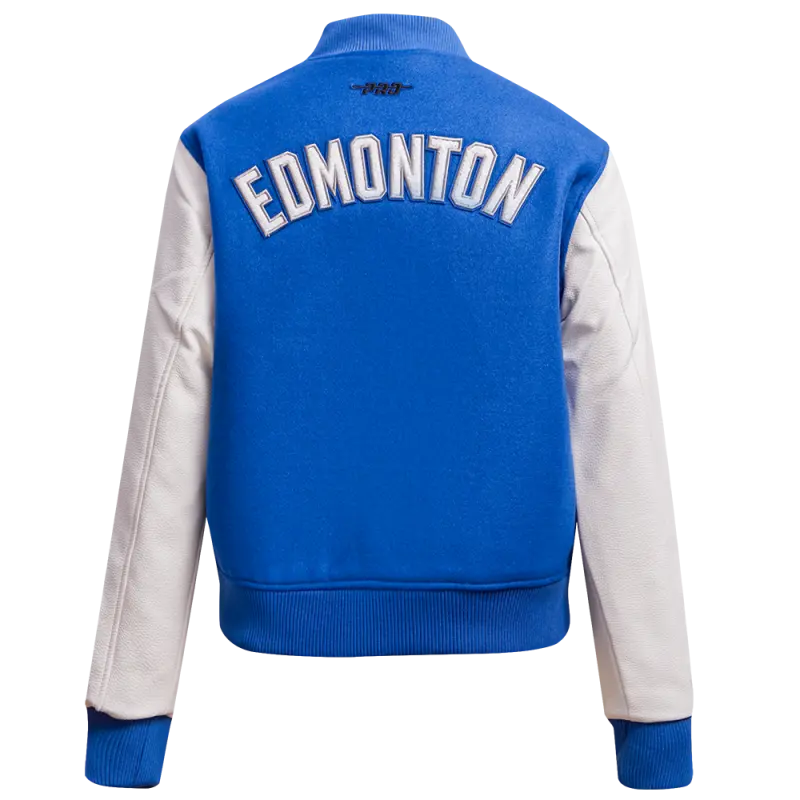 NHL EDMONTON OILERS CLASSIC WOMEN’S WOOL VARSITY JACKET (DODGER BLUE\/WHITE)