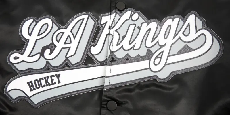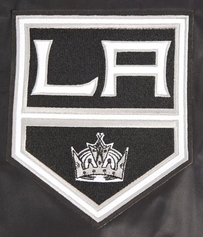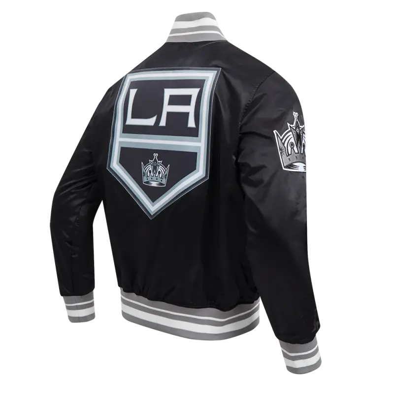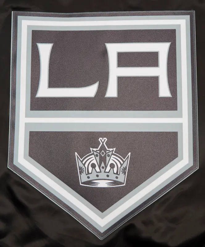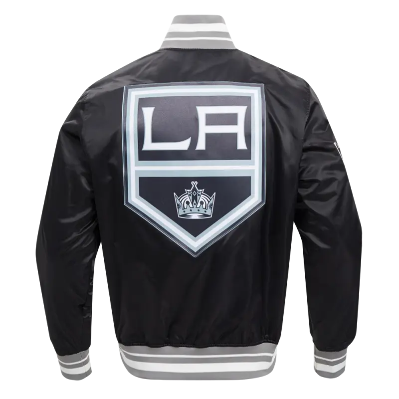 NHL LOS ANGELES KINGS SCRIPT TAIL MEN’S SATIN JACKET (BLACK\/GRAY)