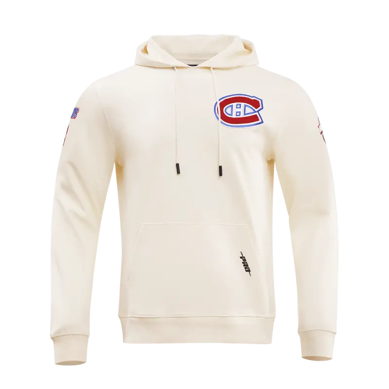 NHL MONTREAL CANADIENS CLASSIC CHENILLE MEN’S DOUBLE KNIT PULLOVER HOODIE (EGGSHELL)