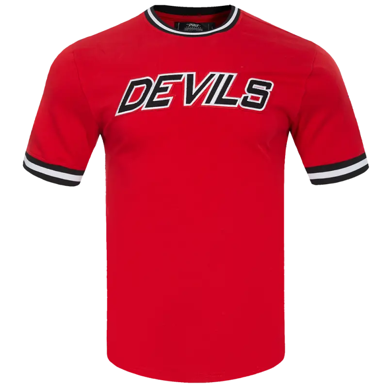 NHL NEW JERSEY DEVILS CLASSIC CHENILLE MEN’S DOUBLE KNIT TEE (RED\/BLACK)
