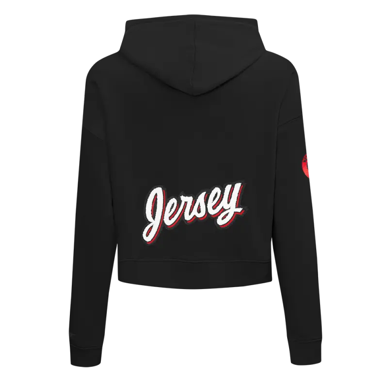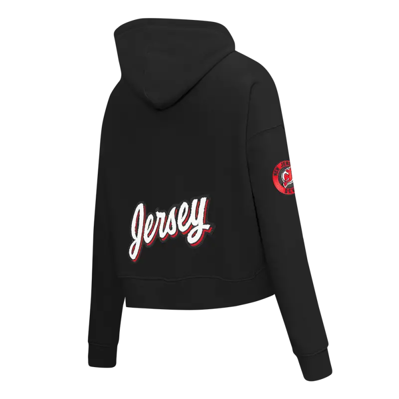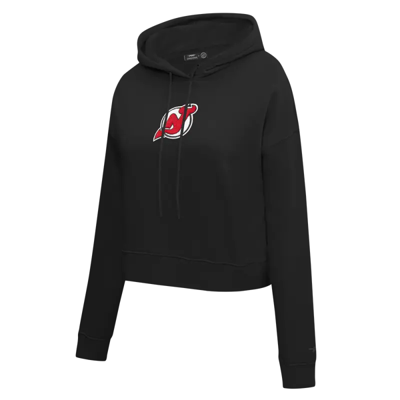 NHL NEW JERSEY DEVILS CLASSIC WOMEN’S FLEECE CROPPED PULLOVER HOODIE (BLACK)