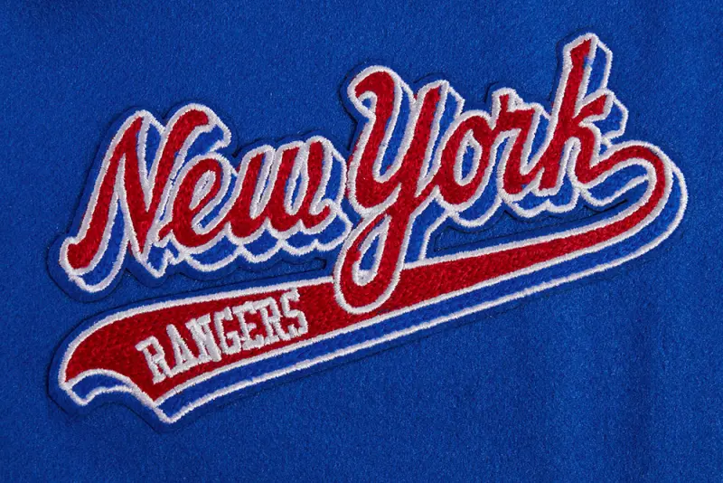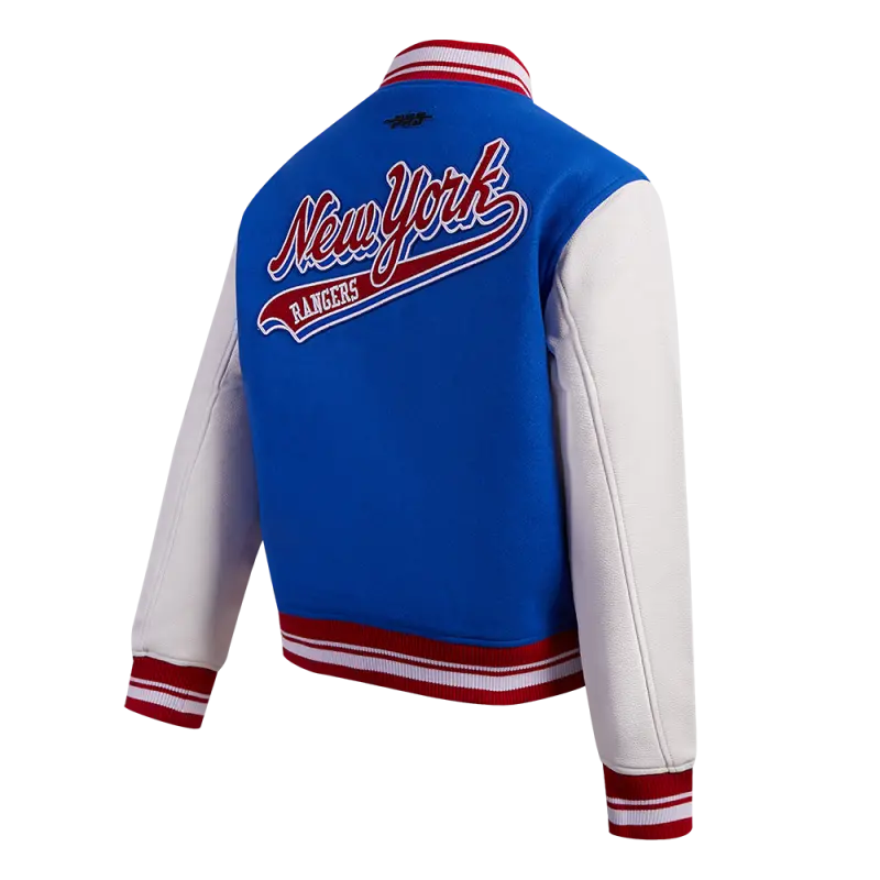 Home / Shop / JACKETS / NHL NEW YORK RANGERS SCRIPT TAIL WOMEN’S WOOL VARSITY JACKET (ROYAL BLUE\/RED)