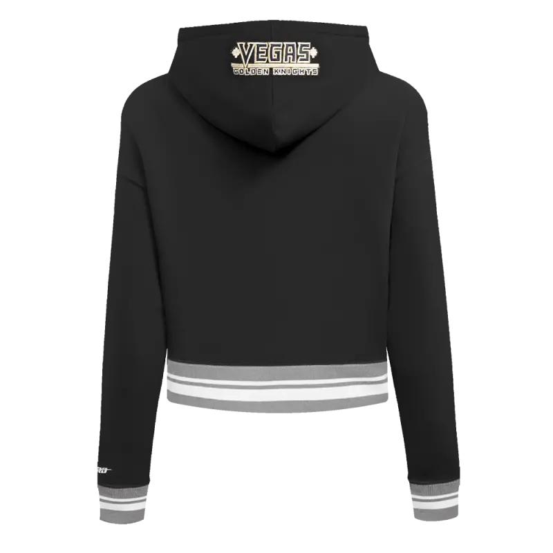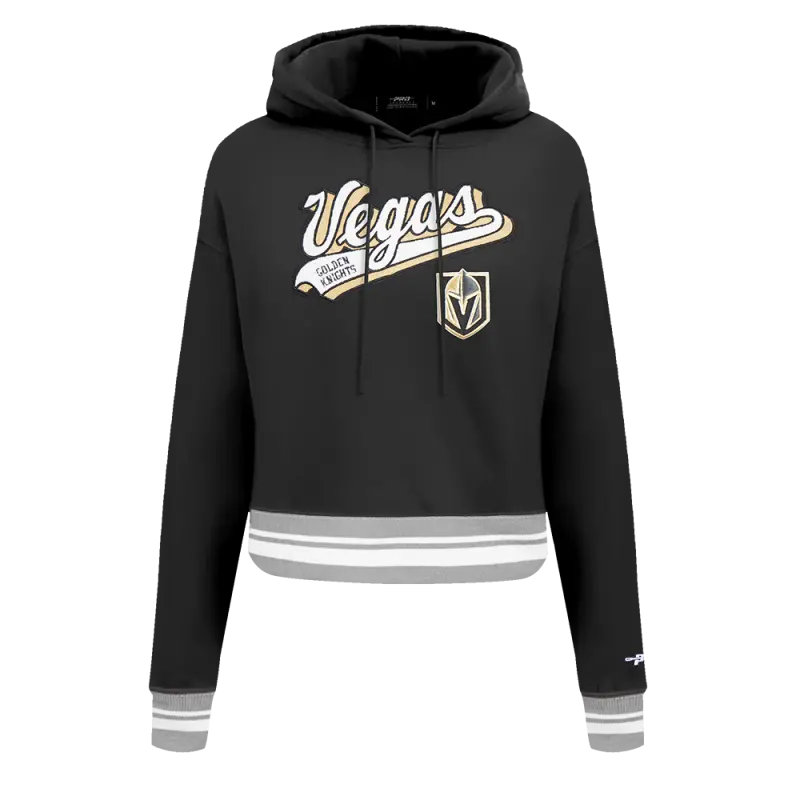 NHL VEGAS GOLDEN KNIGHTS SCRIPT TAIL WOMEN’S RIB FLEECE CROPPED PULLOVER HOODIE (BLACK\/GRAY)